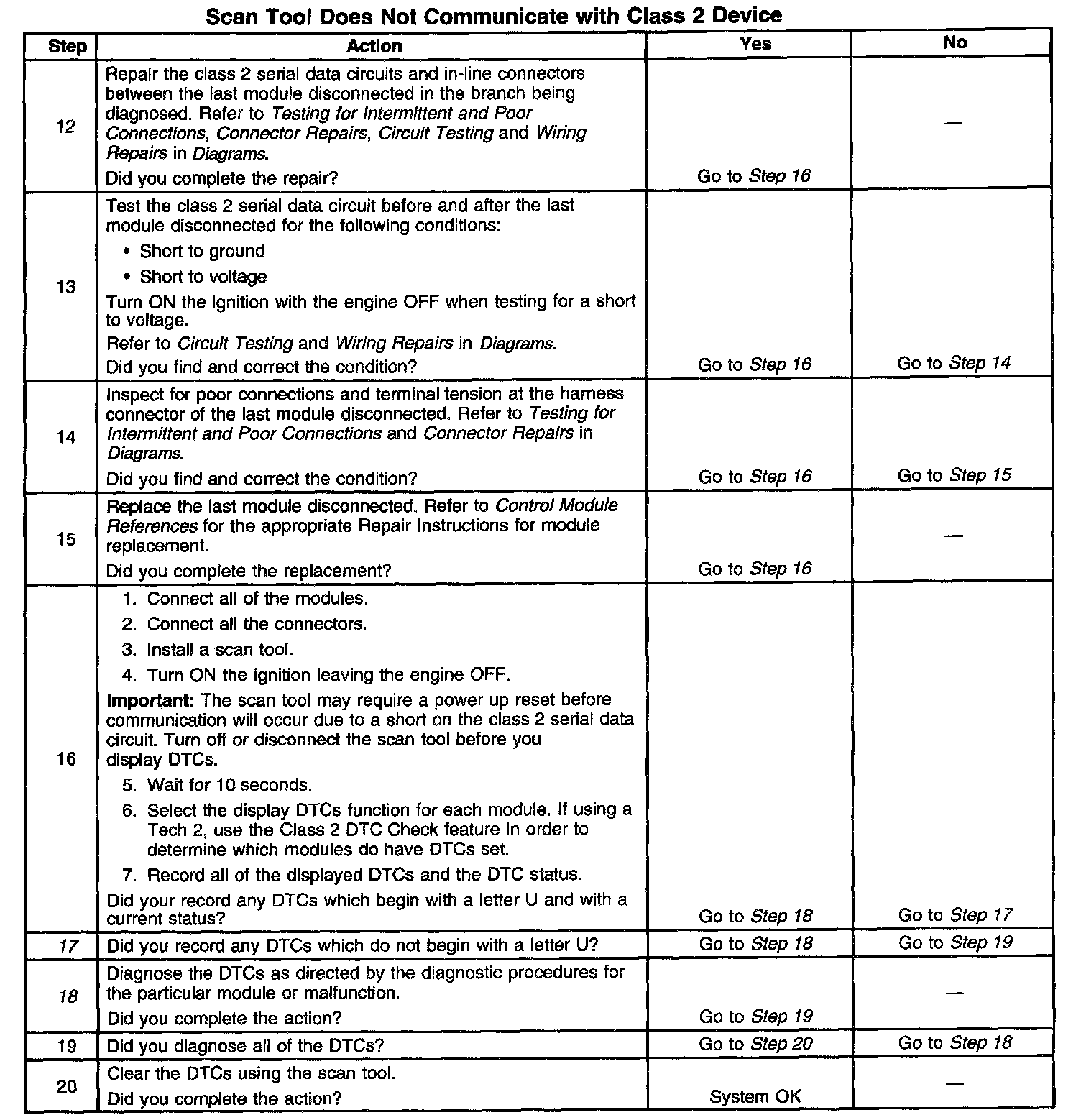 2. A partial malfunction in the class 2 serial data circuit uses a different procedure from a total malfunction of the class 2 serial data circuit.