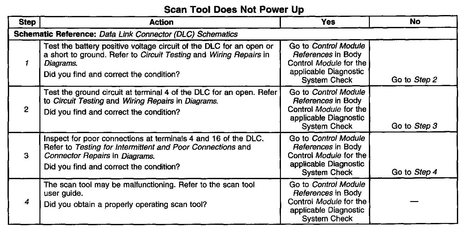 4. The battery positive voltage and ground circuits of the DLC are functioning properly. The malfunction must be due to the scan tool.