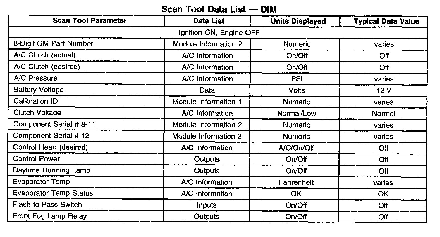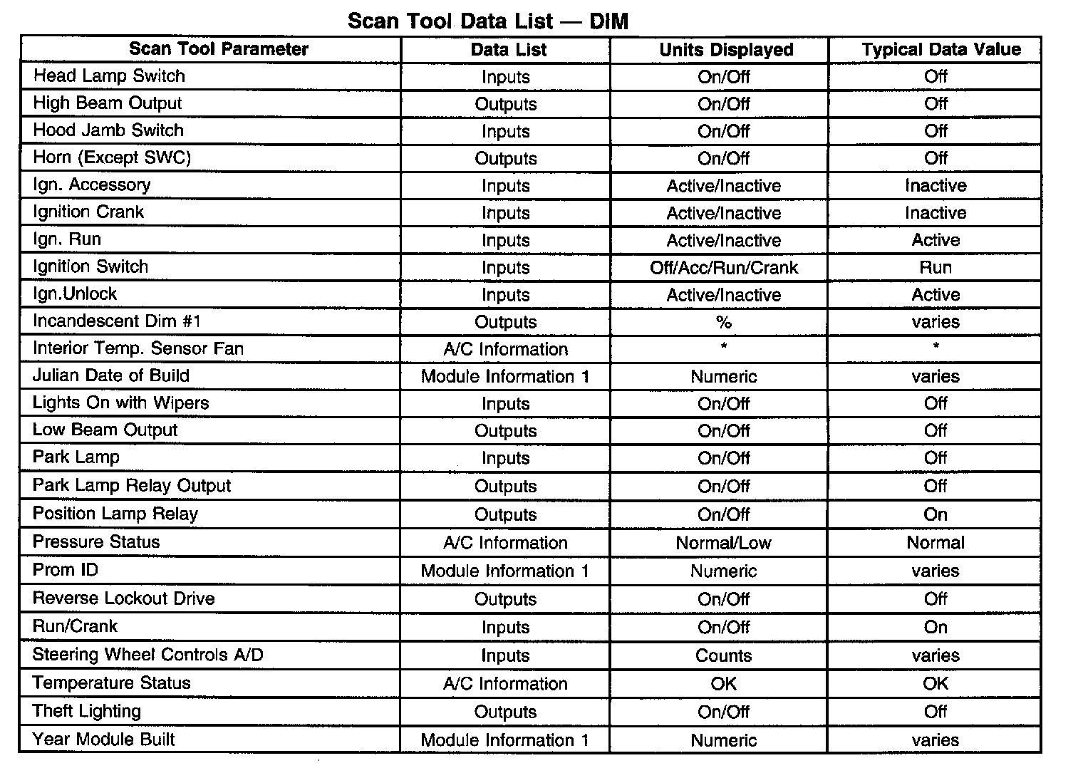 Scan Tool Data List - DIM (Part 1 Of 2):