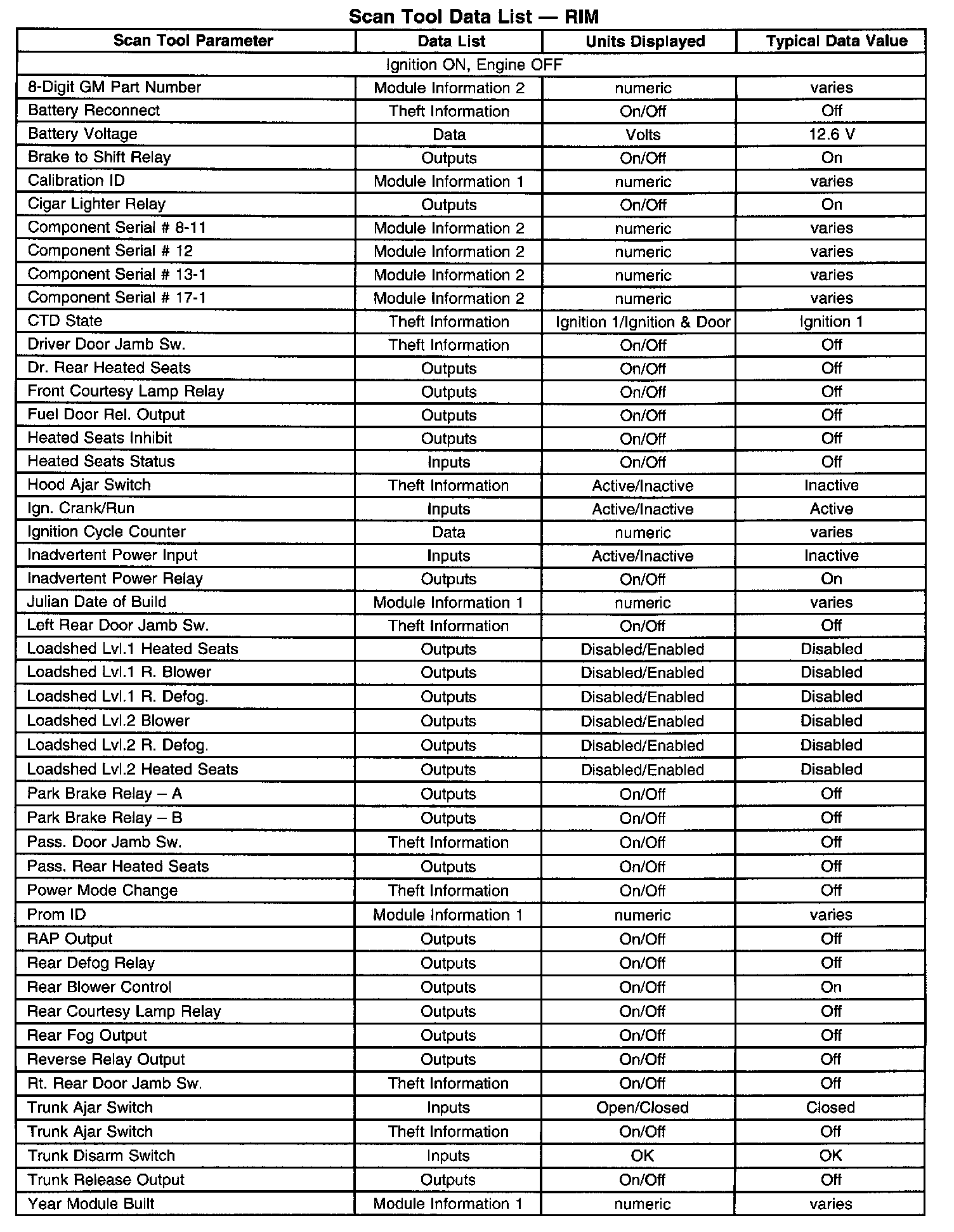 Scan Tool Data List - RIM: