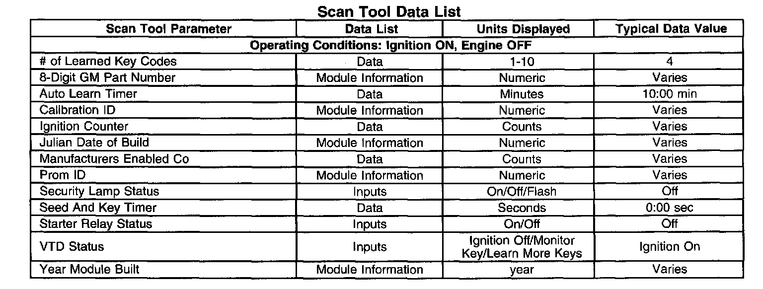 Scan Tool Data List - Antitheft System