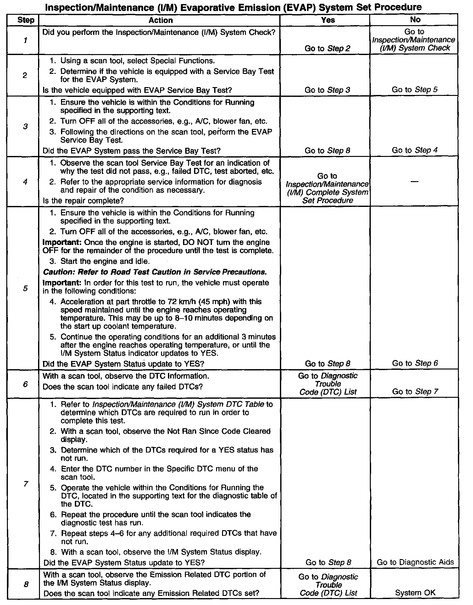 1. Make sure you perform the I/M System Check before performing this test. Failure to do so may result in difficulty updating the status to YES. Inspection/Maintenance (I/M) System Check