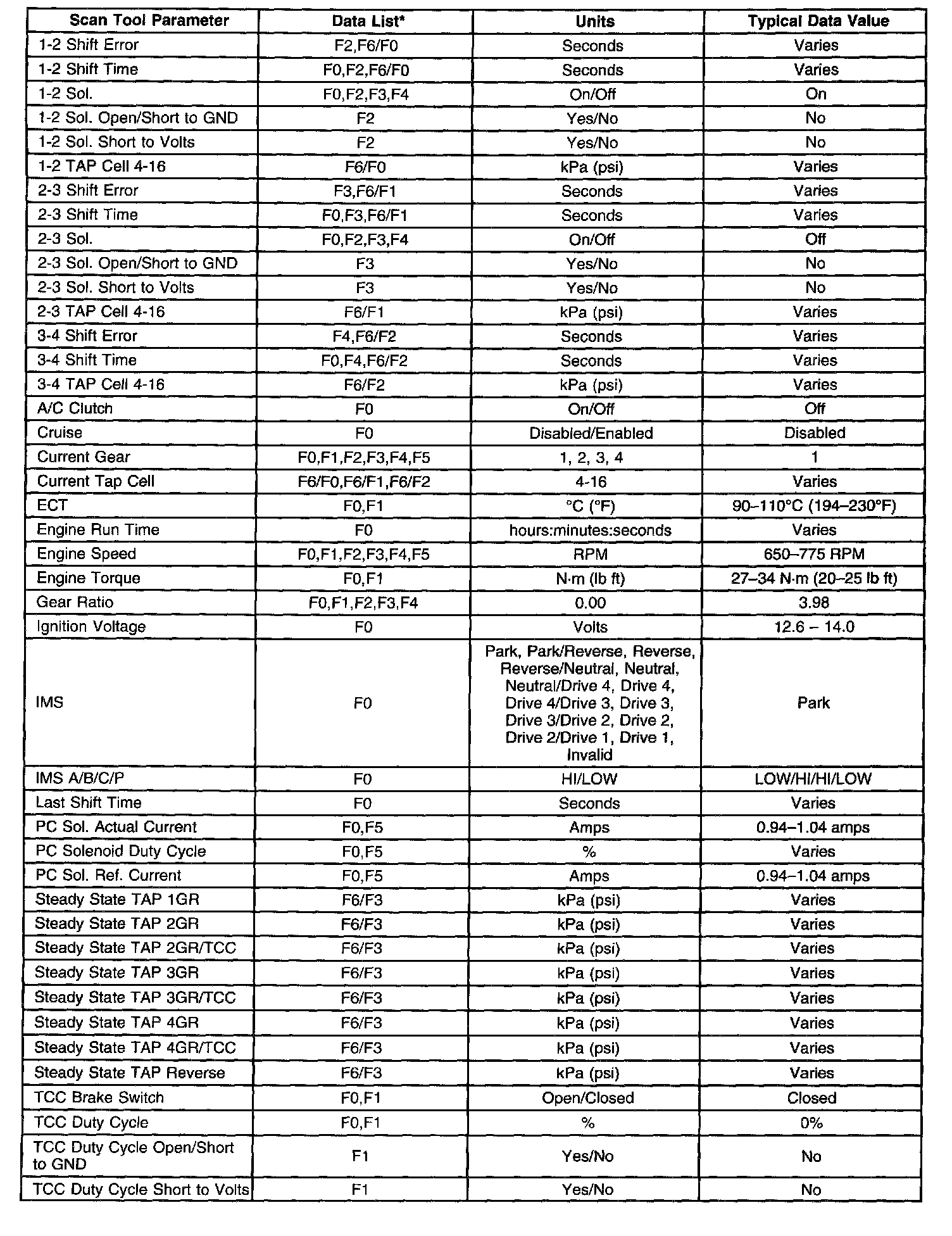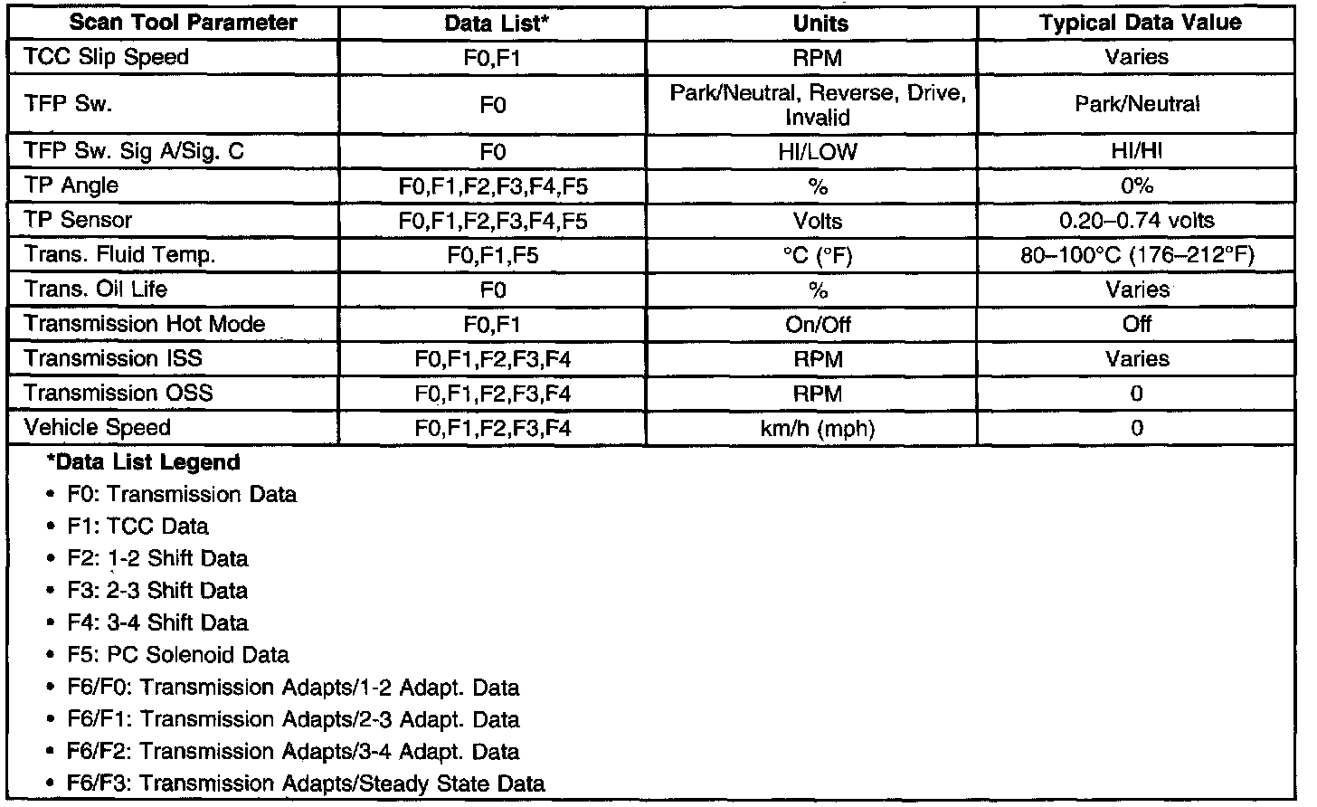 Transmission Scan Tool Data ListPart 1 of 2