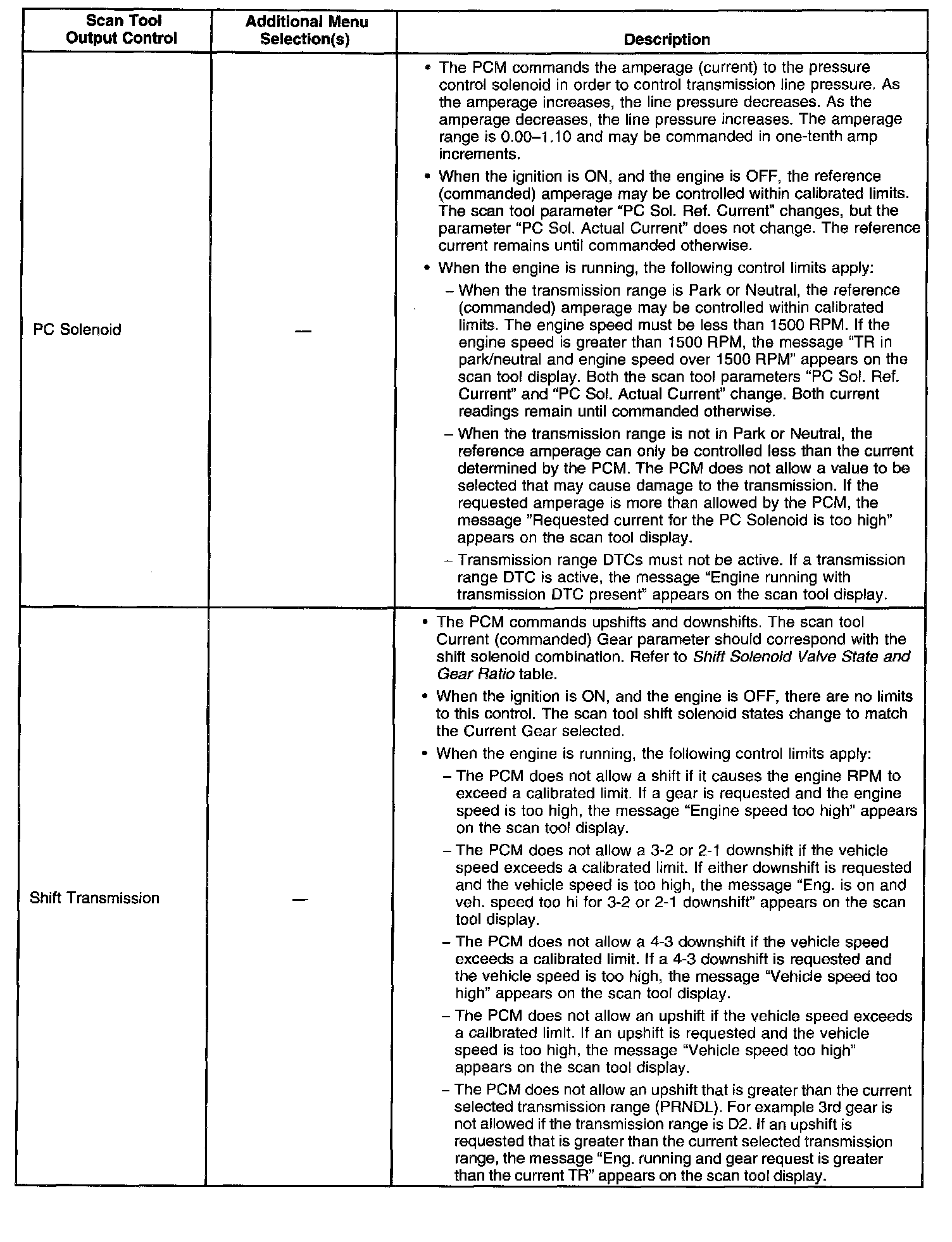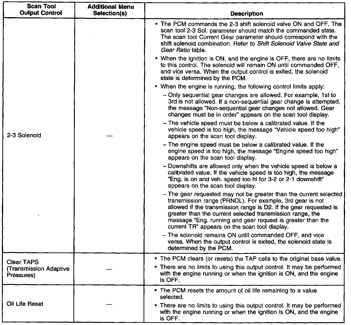 Scan Tool Output Controls