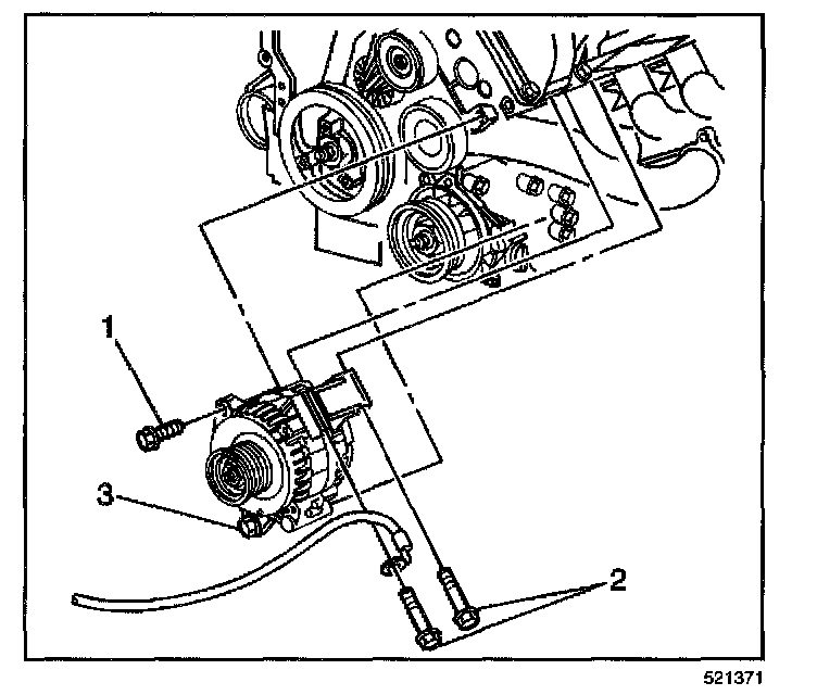 7. Loosen the lower generator bolt (3).