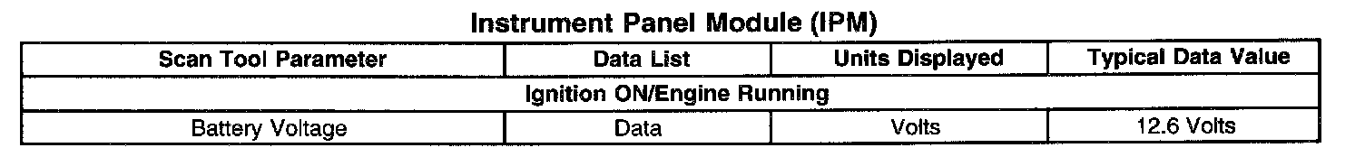 Scan Tool Data List - Instrument panel Module (IPM)