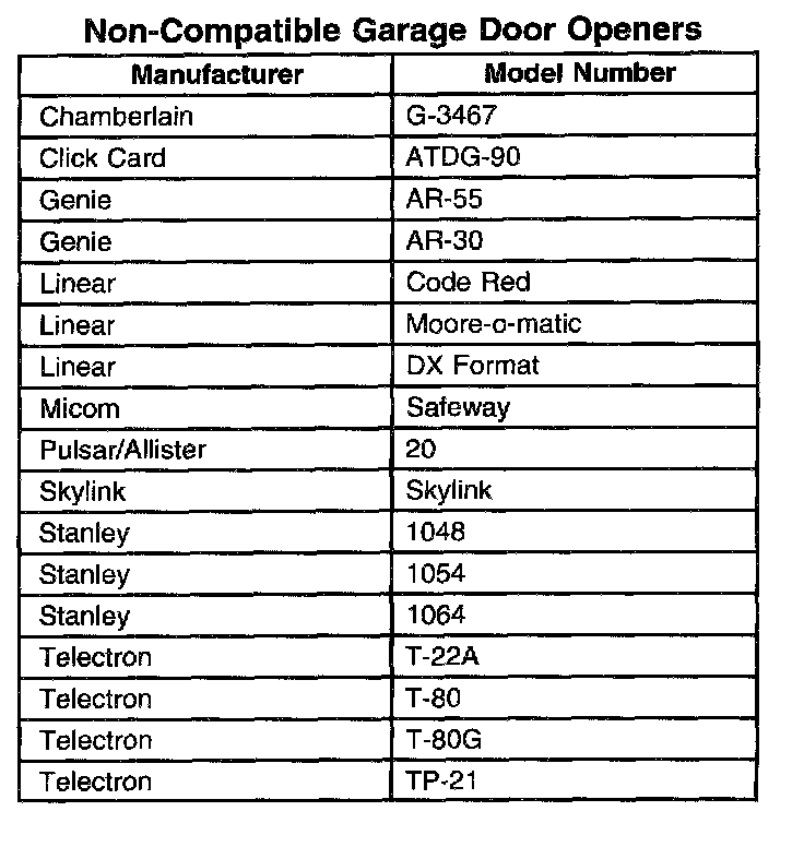 Non-Compatible Garage Door Openers: