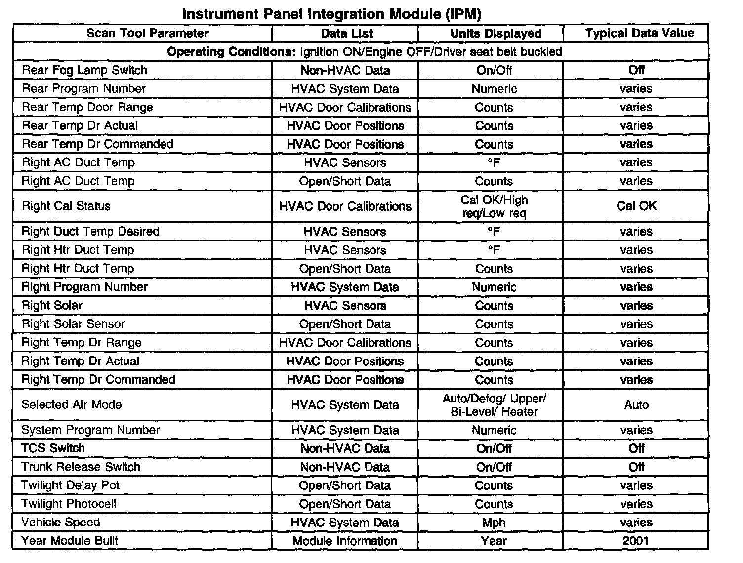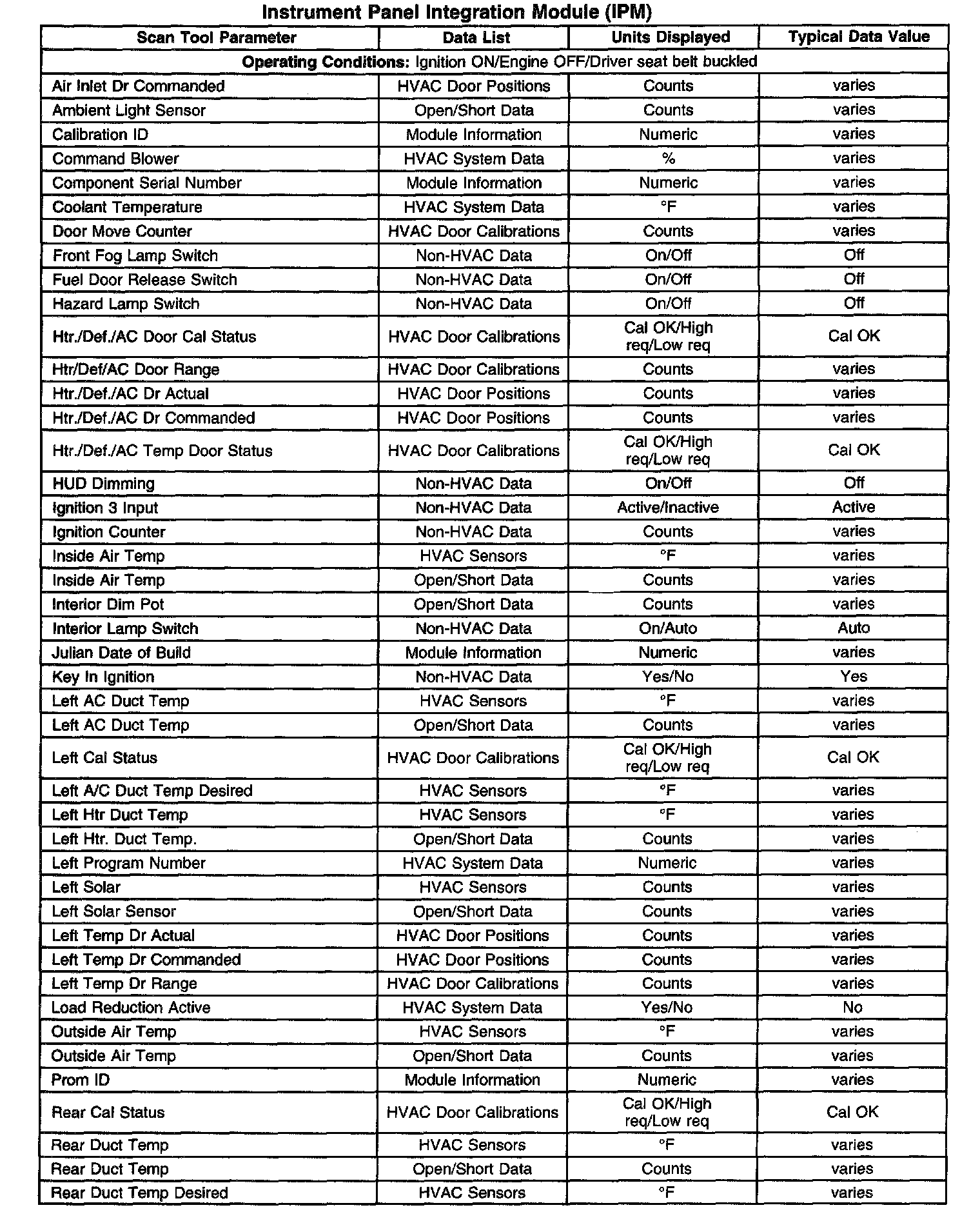Scan Tool Data List - Instrument Panel Integration Module (IPM)