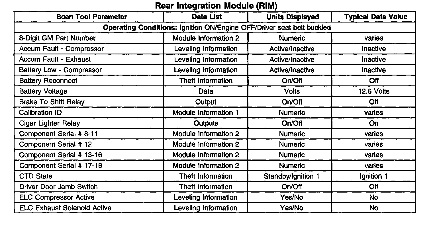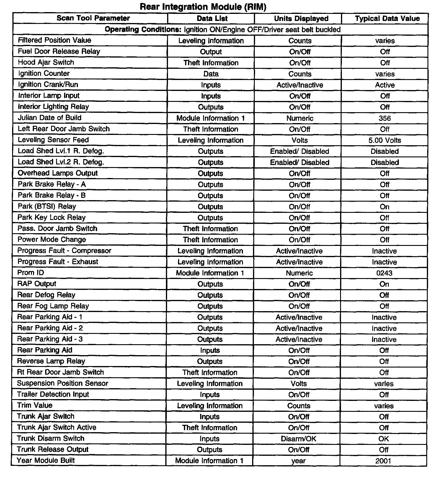 Scan Tool Data List - Rear Integration Module (RIM)