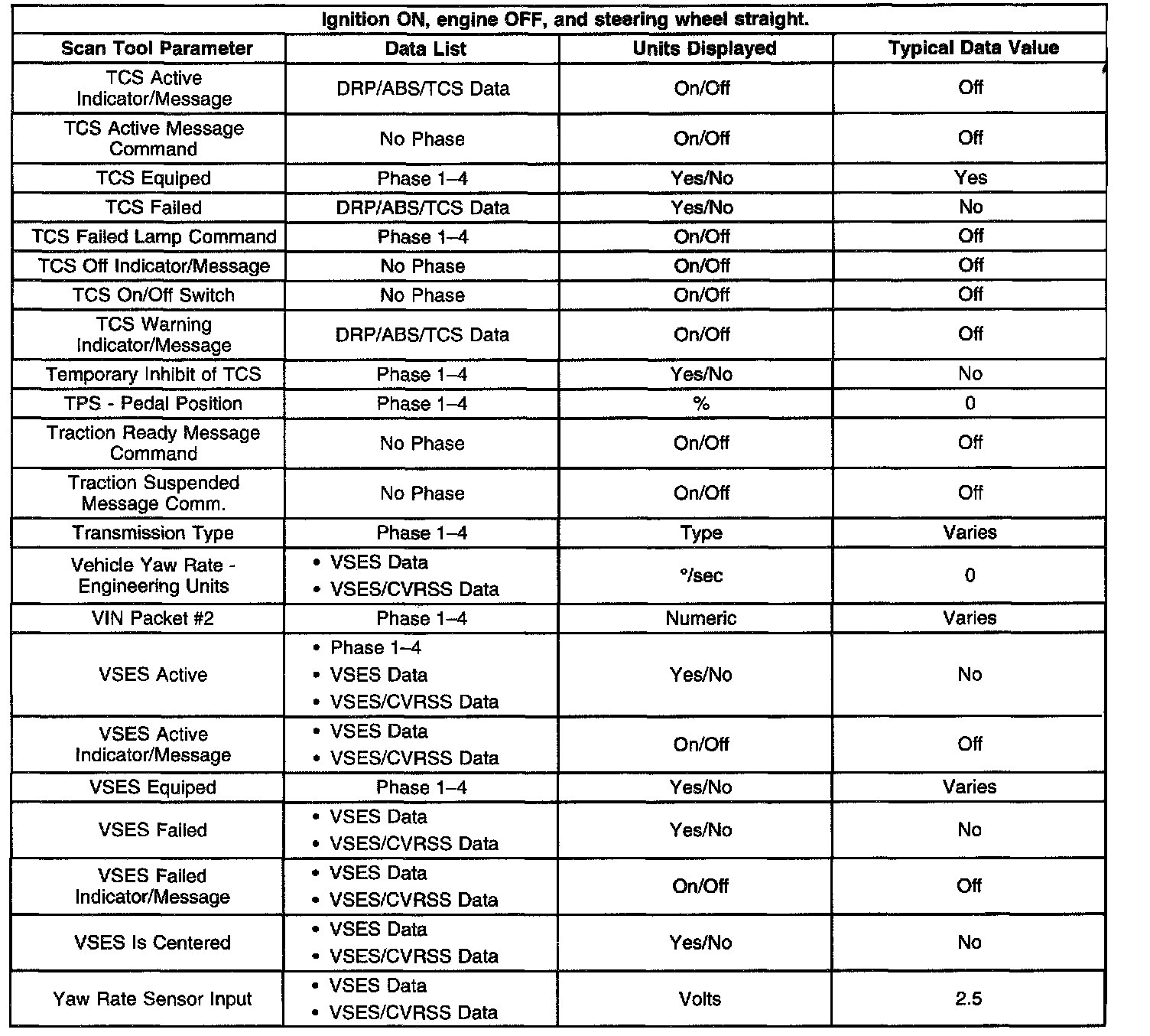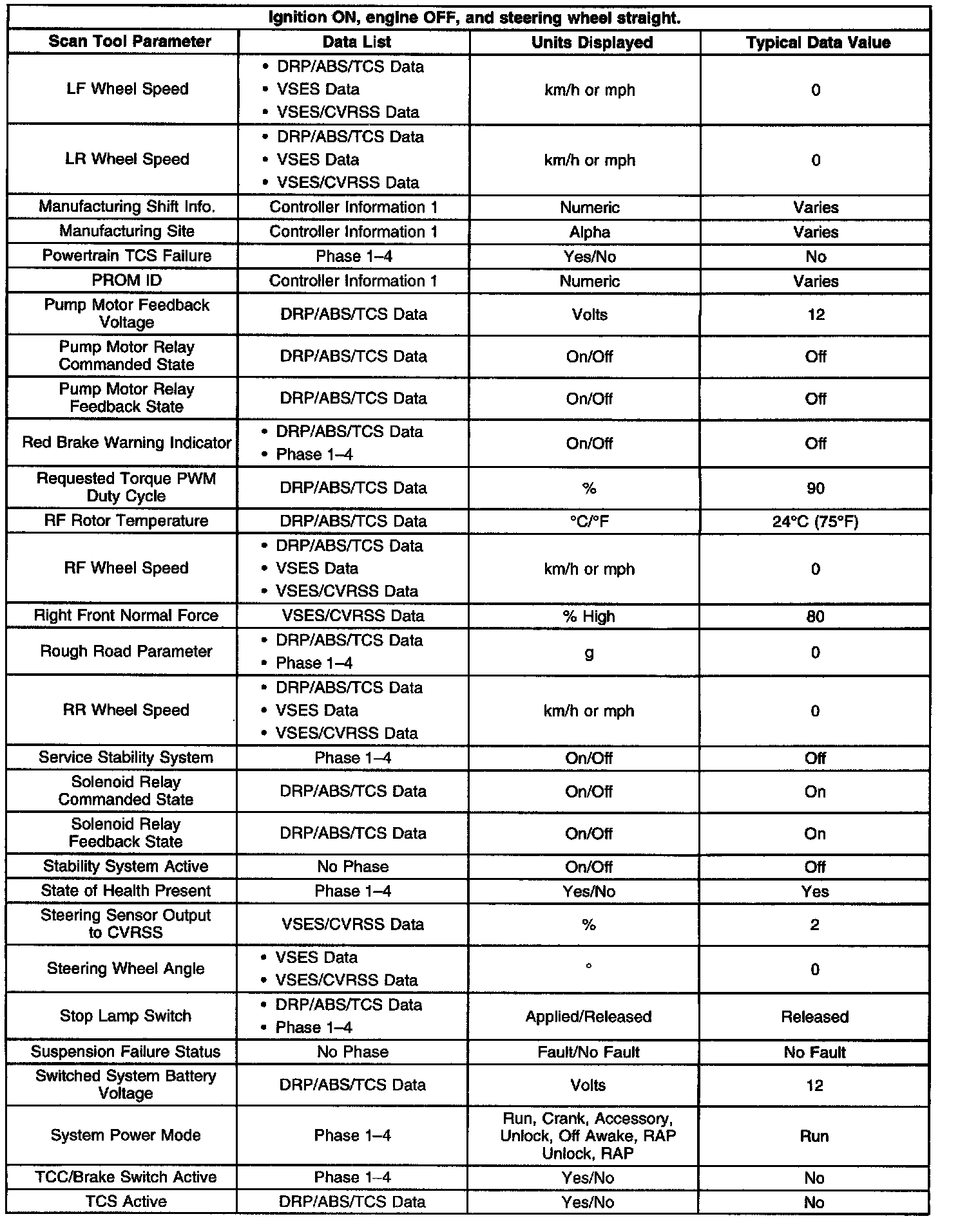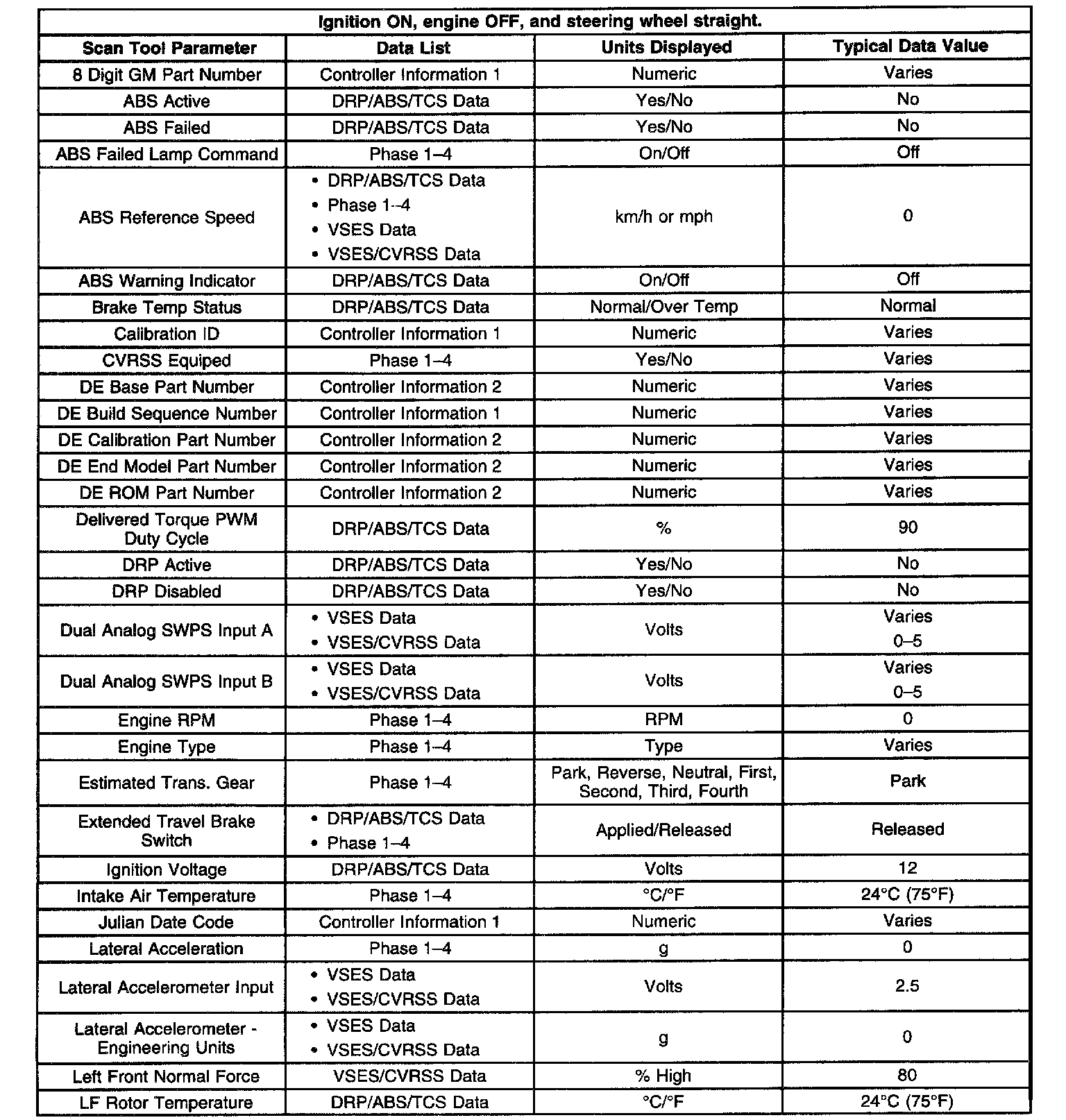 Scan Tool Data List