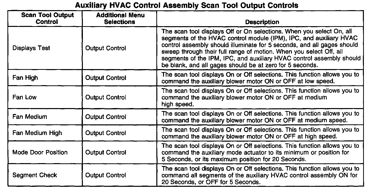 Scan Tool Output Controls - Auxiliary HVAC Control Assembly
