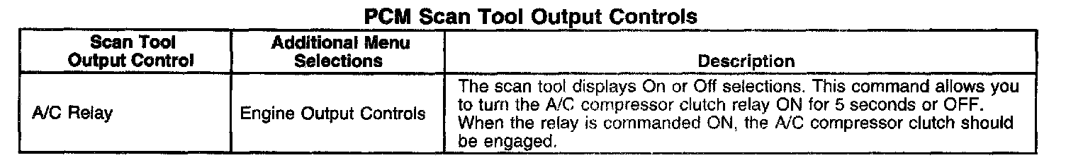 Scan Tool Output Controls - Powertrain Control Module (PCM)