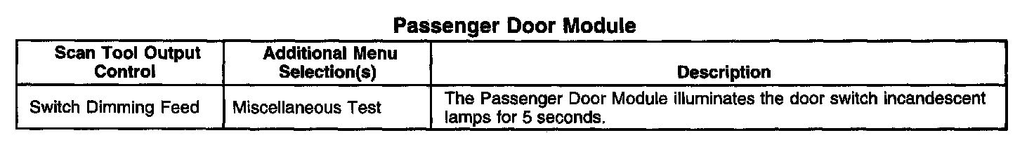 Scan Tool Output Controls - Passenger Door Module (PDM)