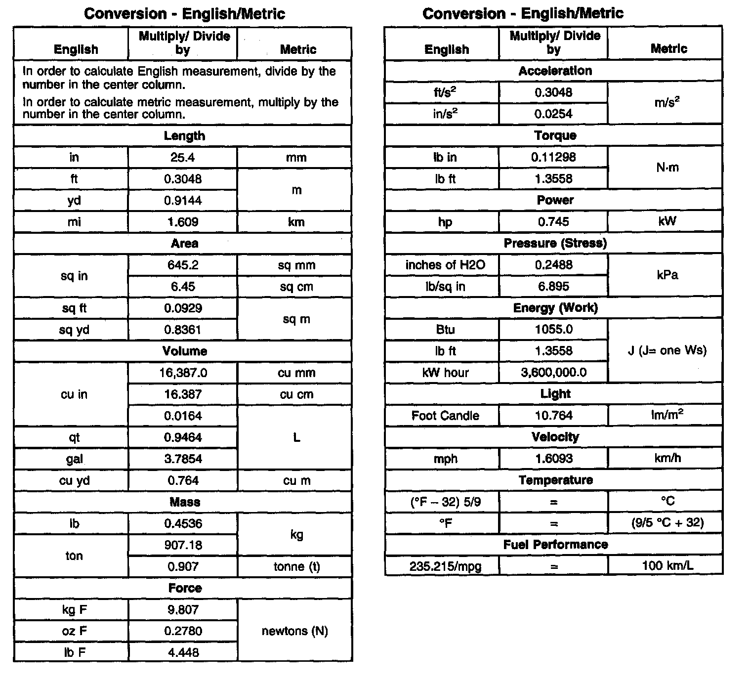 Conversion - English/Metric