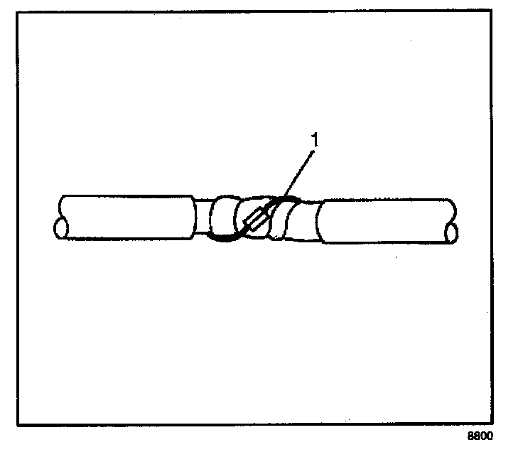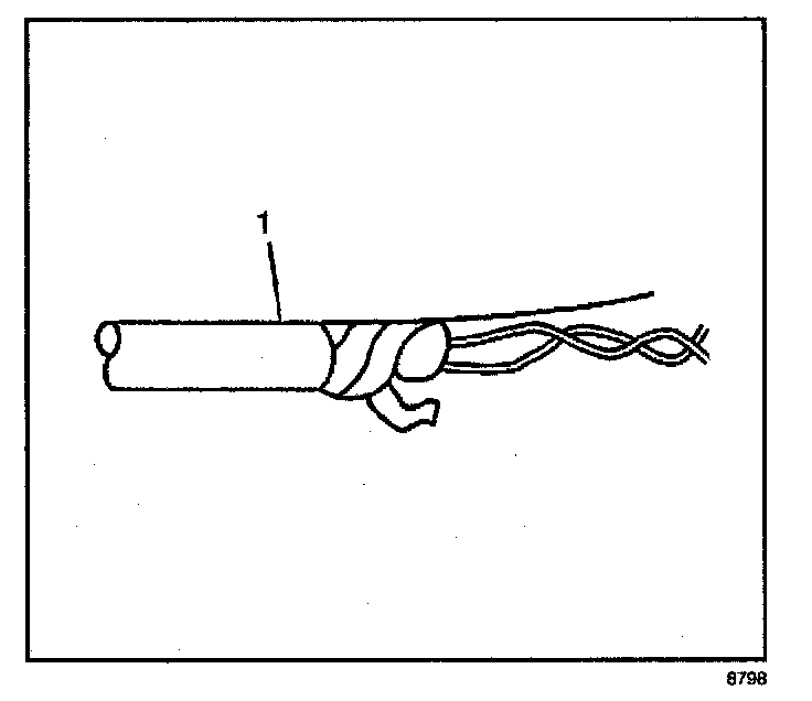 1. Remove the outer jacket (1). Use care not to cut into the drain wire of the mylar tape.