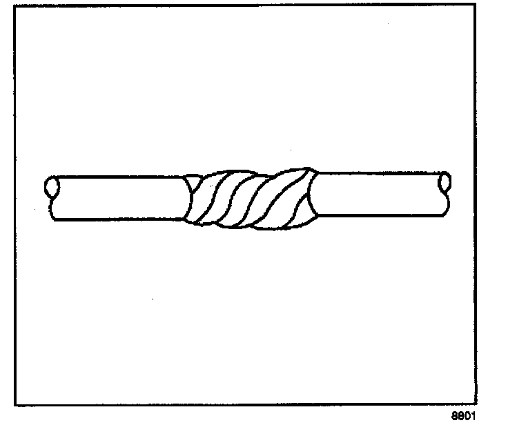 2. Unwrap the tape. Do not remove the tape. Use the tape in order to rewrap the twisted conductors after the splice is made.