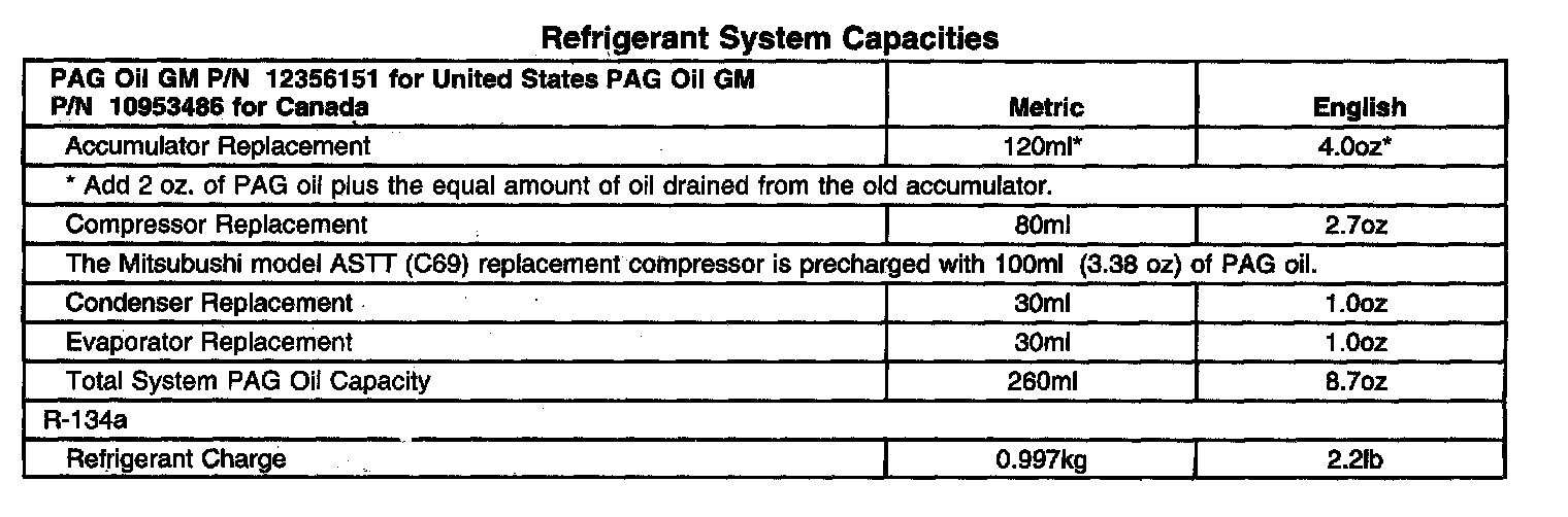 Refrigerant System Capacities - Heating, Ventilation And Air Conditioning: