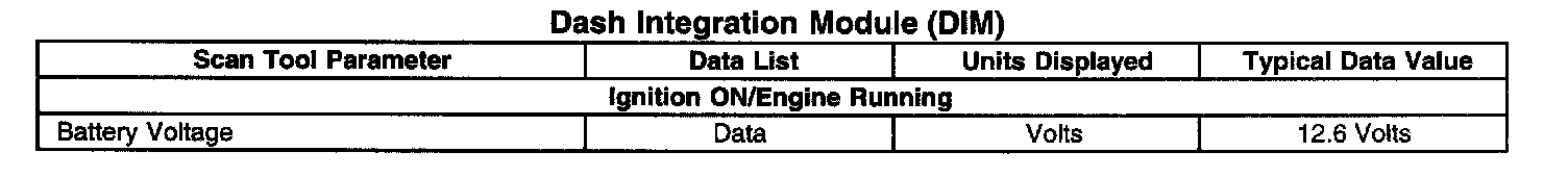 Scan Tool Data List - Dash Integration Module (DIM)