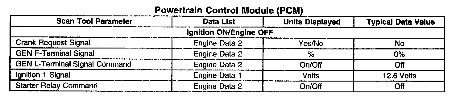 Scan Tool Data List - Powertrain Control Module (PCM)