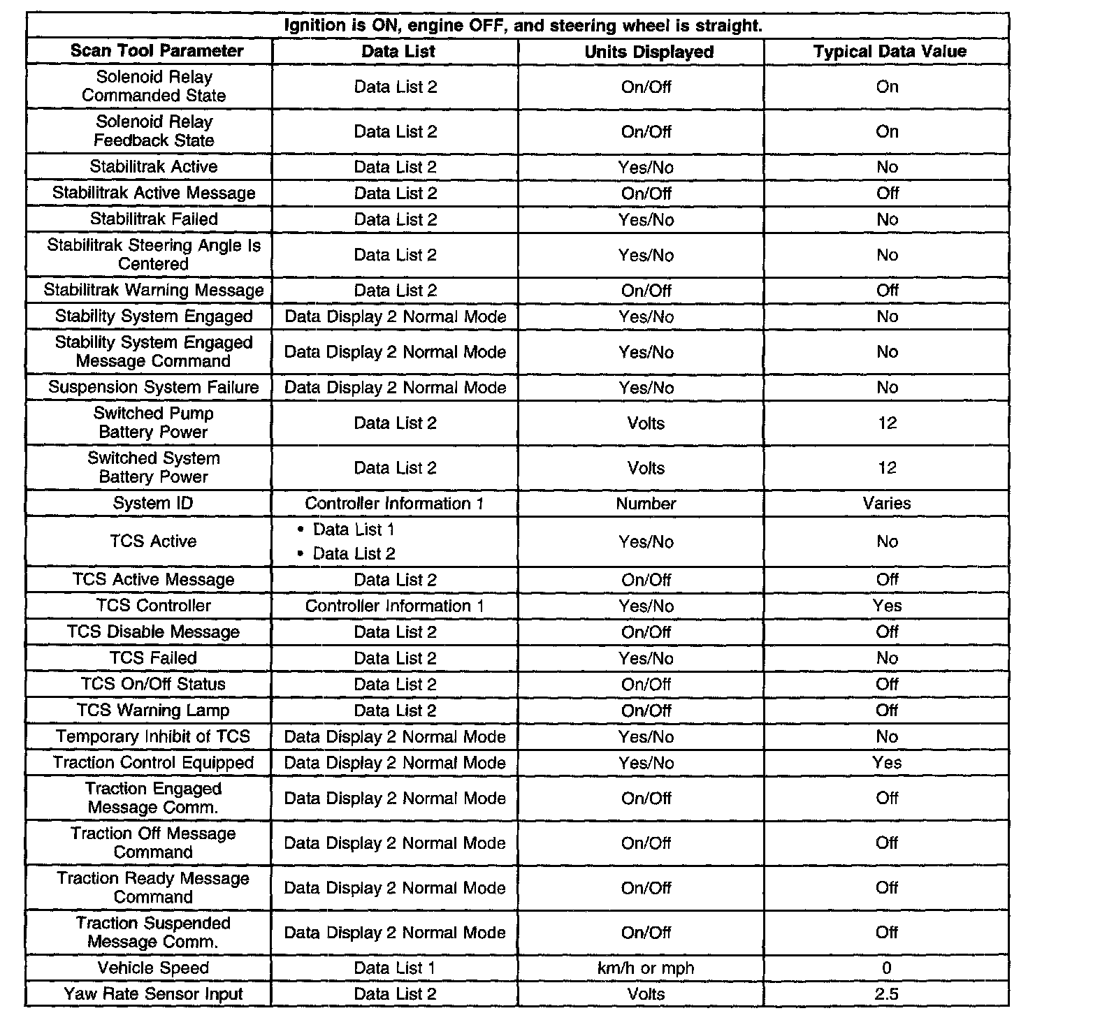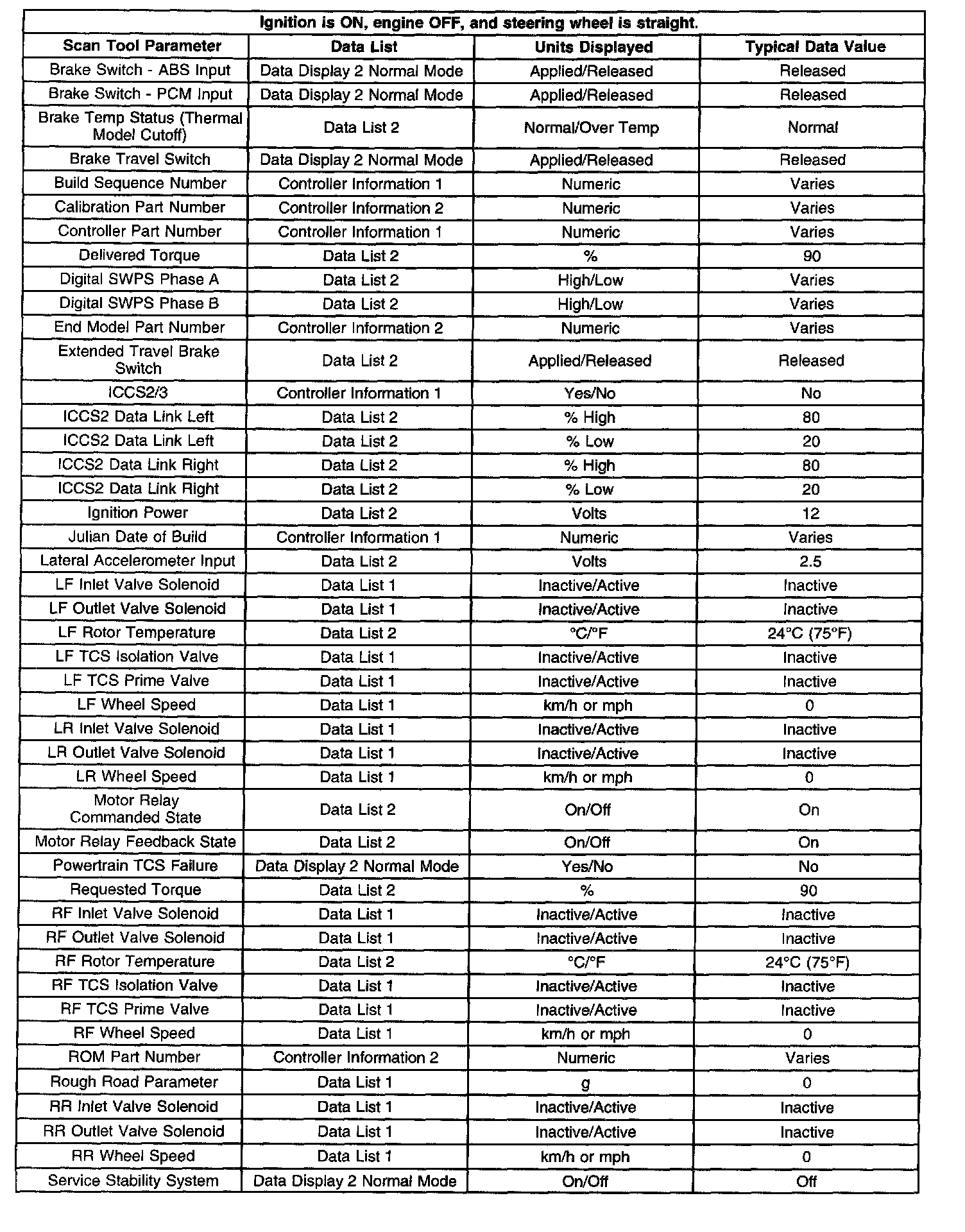 Scan Tool Data List