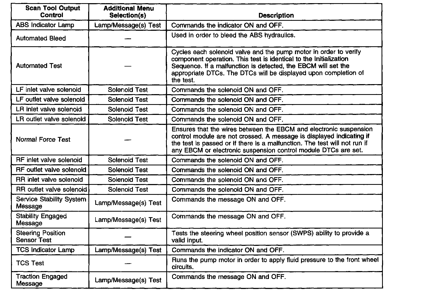 Scan Tool Output Controls