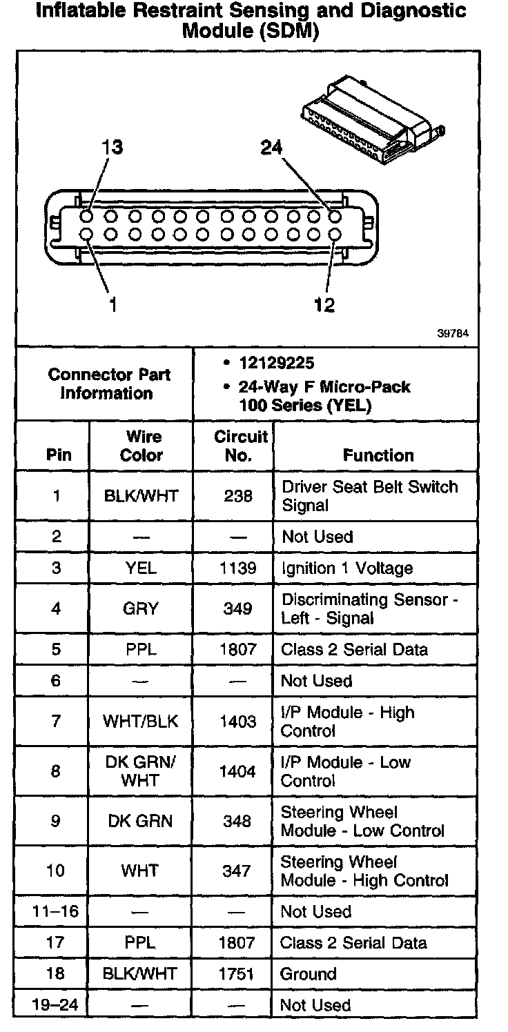 Inflatable Restraint Sensing And Diagnostic Module (SDM):