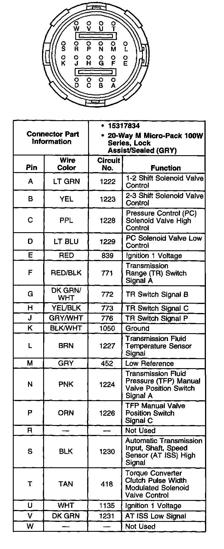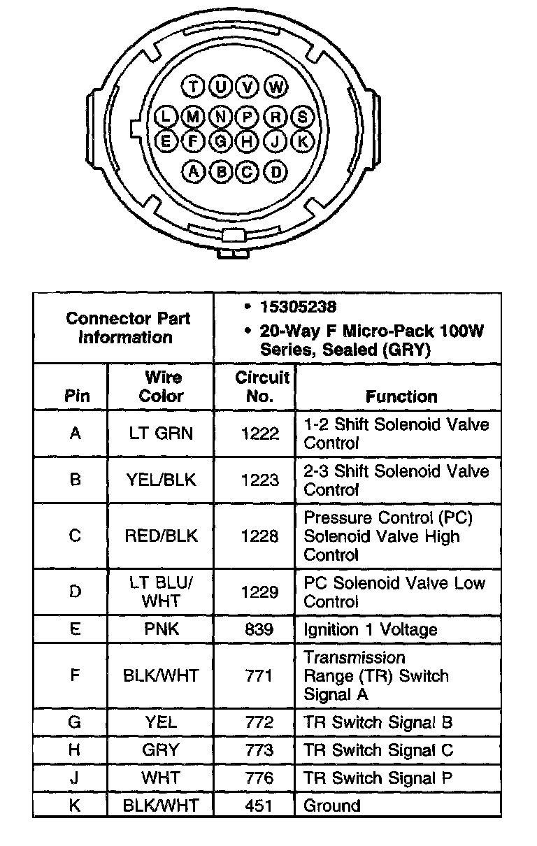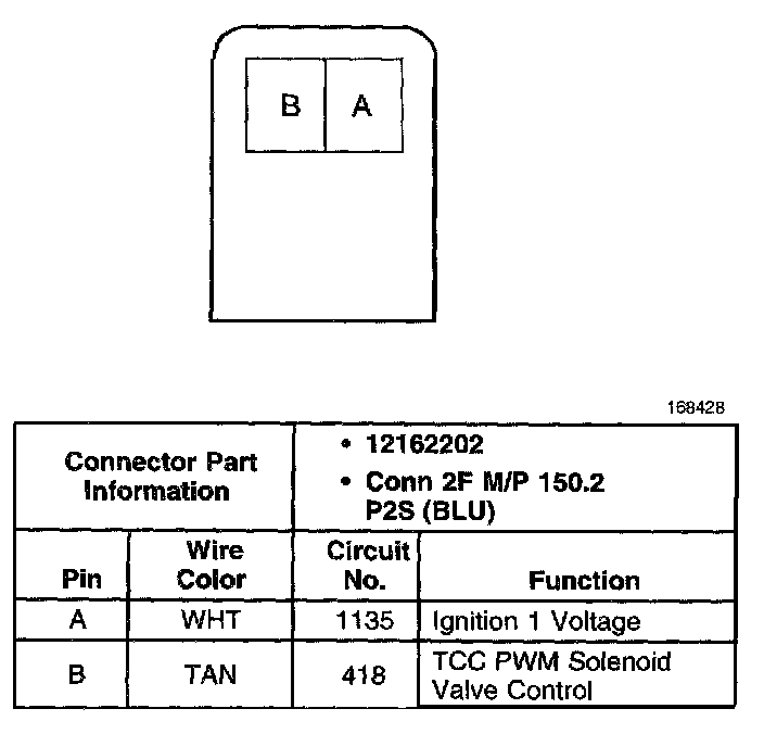 Torque Converter Clutch Pulse Width Modulated (TCC PWM) Solenoid Valve Connector, Wiring Harness Side