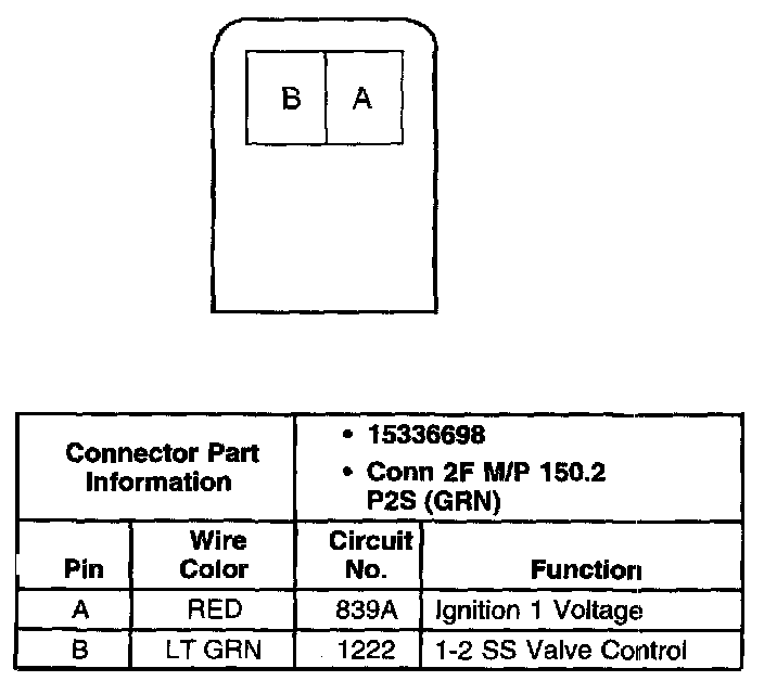 1-2 Shift Solenoid (SS) Valve Connector, Wiring Harness Side