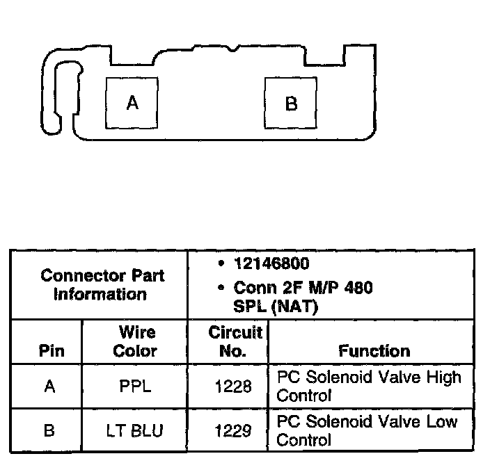 Pressure Control (PC) Solenoid Valve Connector, Wiring Harness Side