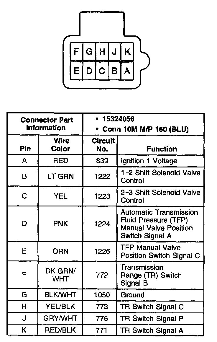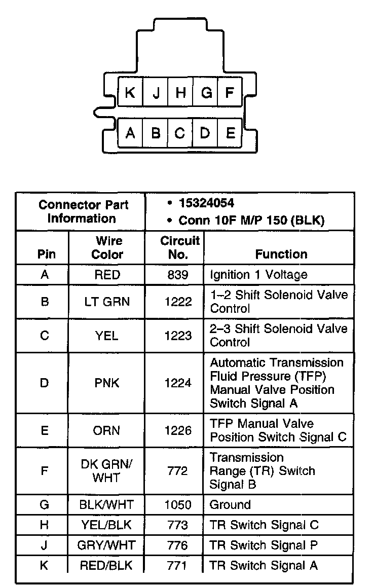 Automatic Transmission Fluid Pressure (TFP) Manual Valve Position Switch Connector, Wiring Harness Side