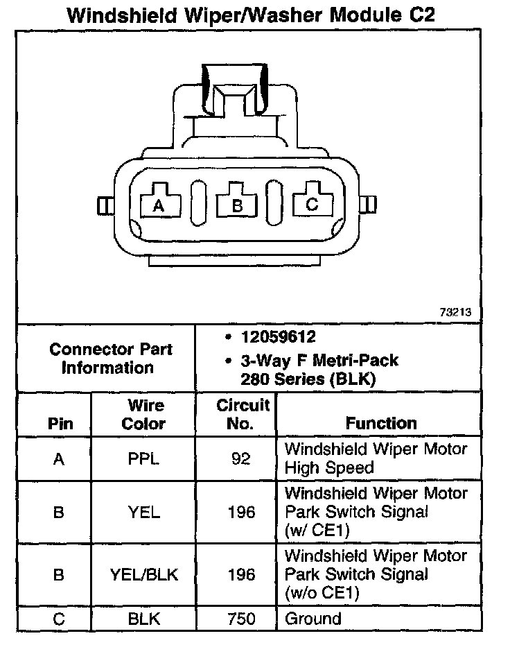 Windshield Wiper/Washer Module C2: