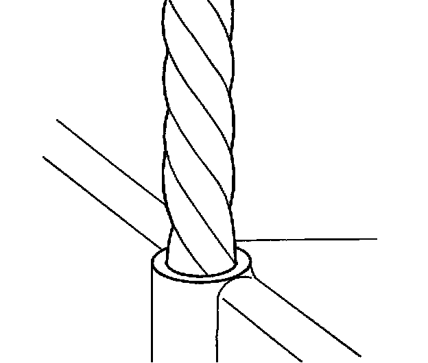 ^ During the drilling process, it is necessary to repeatedly remove the drill and clean chips from the hole and the flutes of the drill.