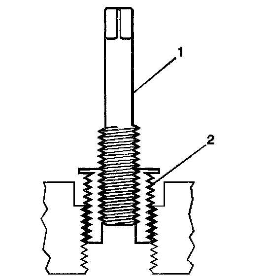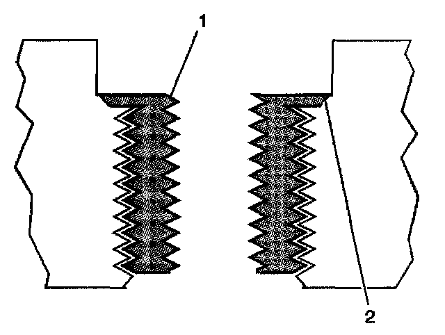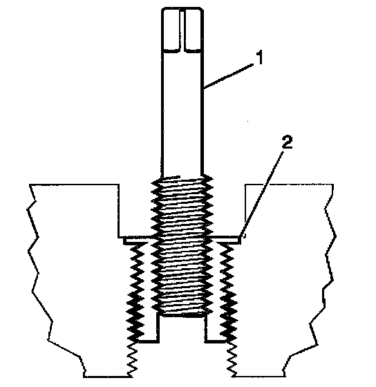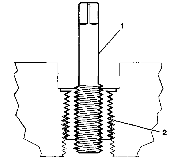 14. Inspect the insert (1) for proper installation (2) into the tapped hole.