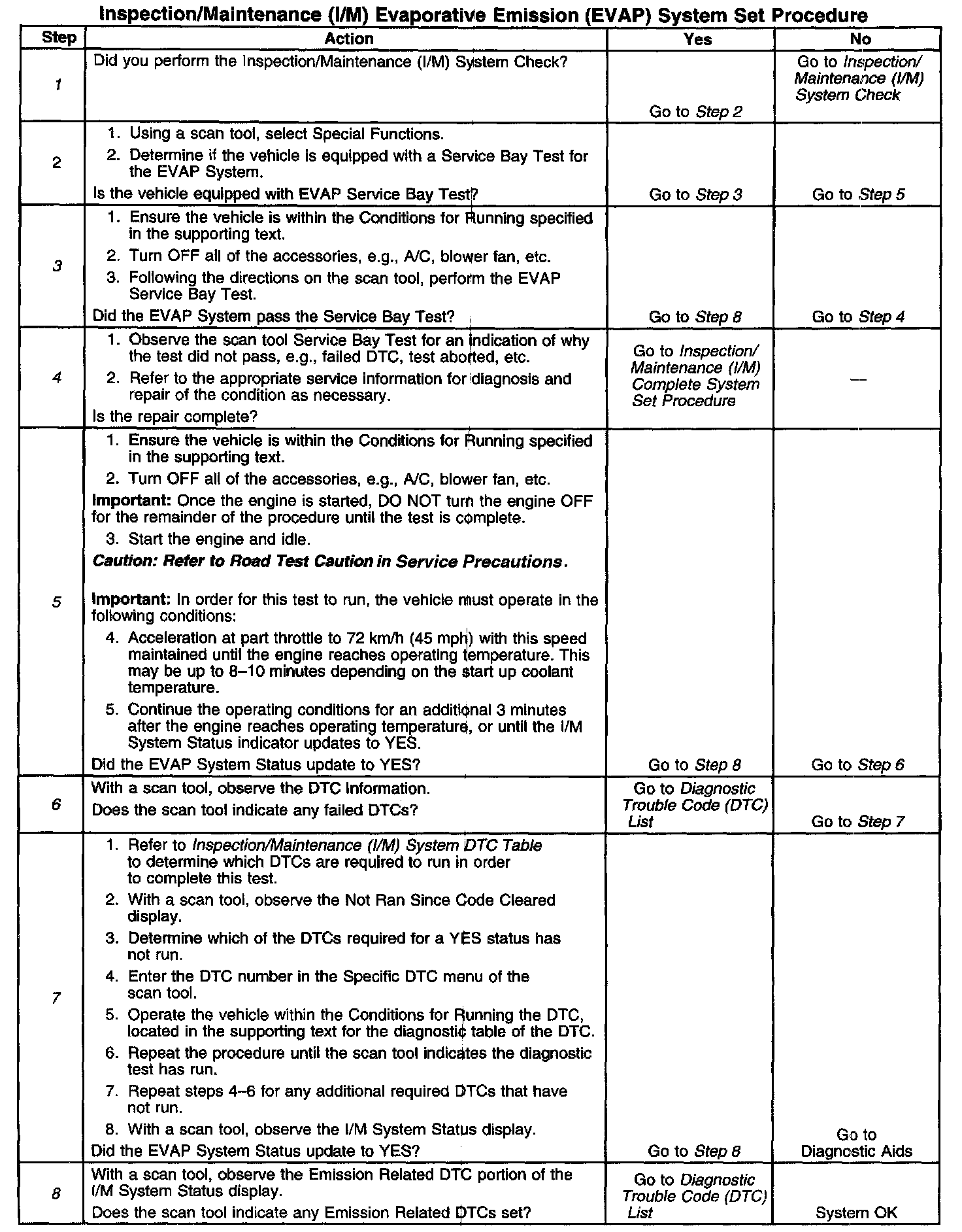 6. This step is to identify a first failure of a type B DTC. A DTC only appears on the I/M System Status display when the DTC becomes a MIL illuminating DTC. This occurs on the second failure of a type B DTC. A first failure of a type B DTC will not allow the I/M System Status to update to YES. Refer to Diagnostic Aids.