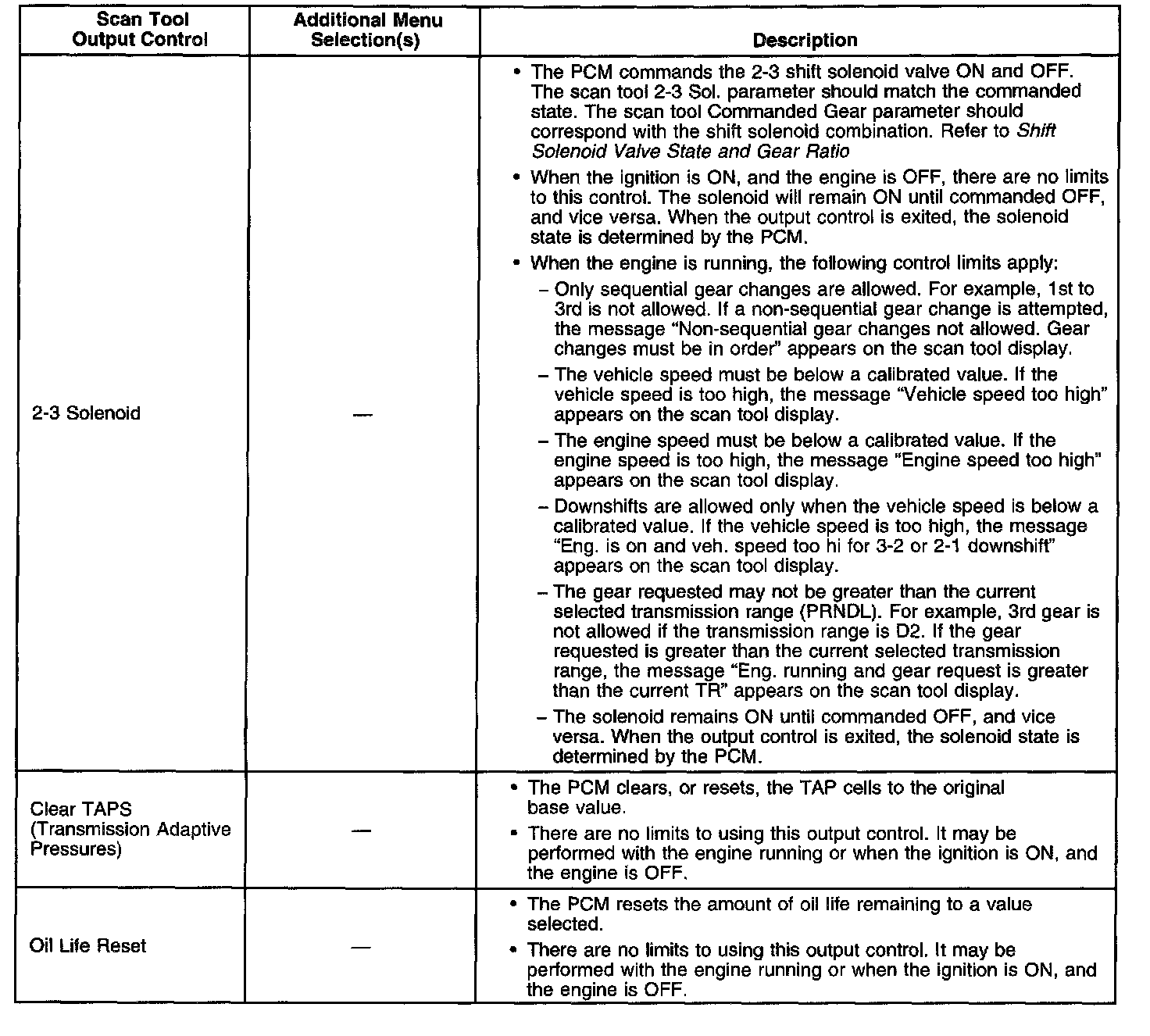 Scan Tool Output Controls