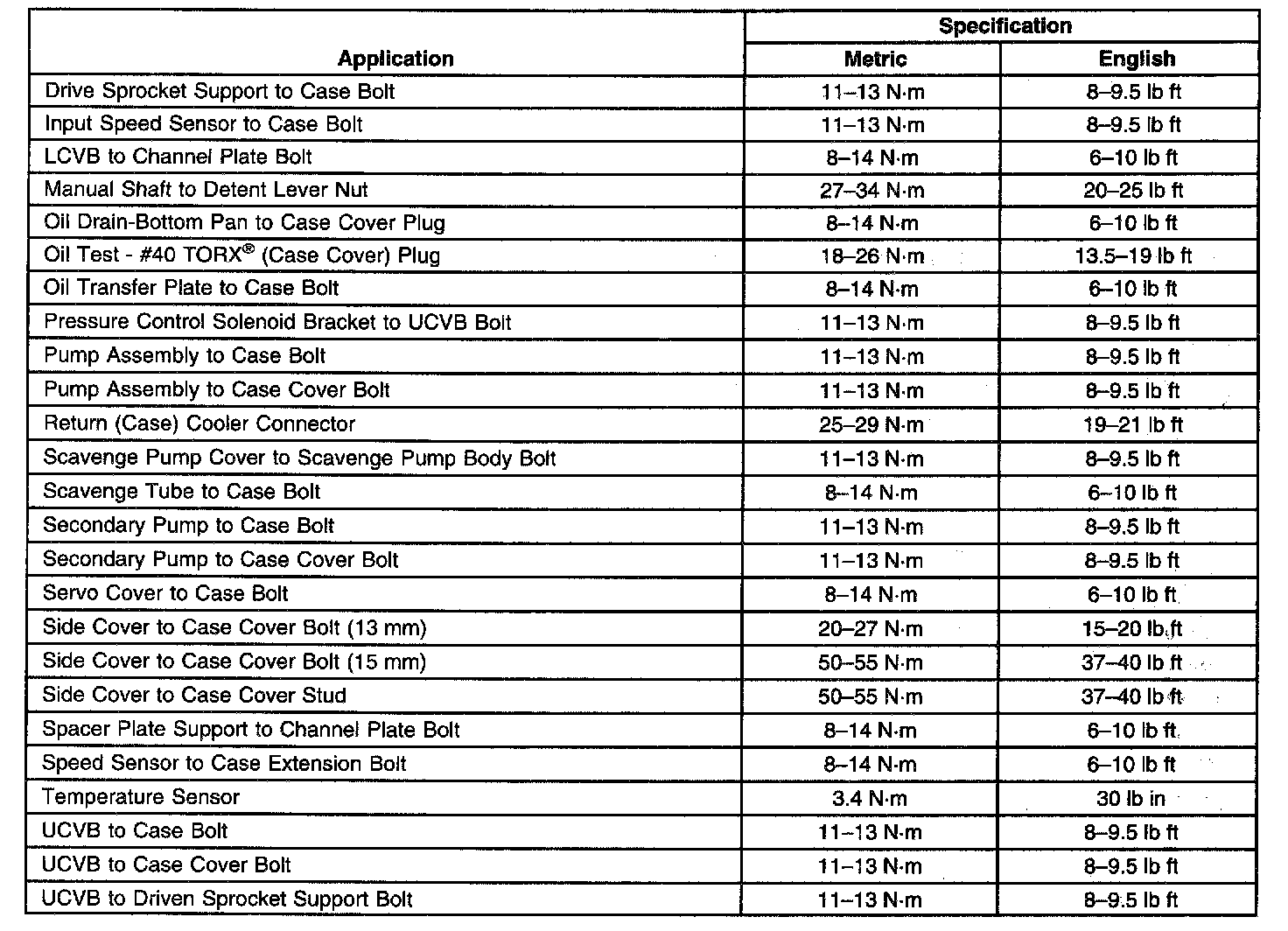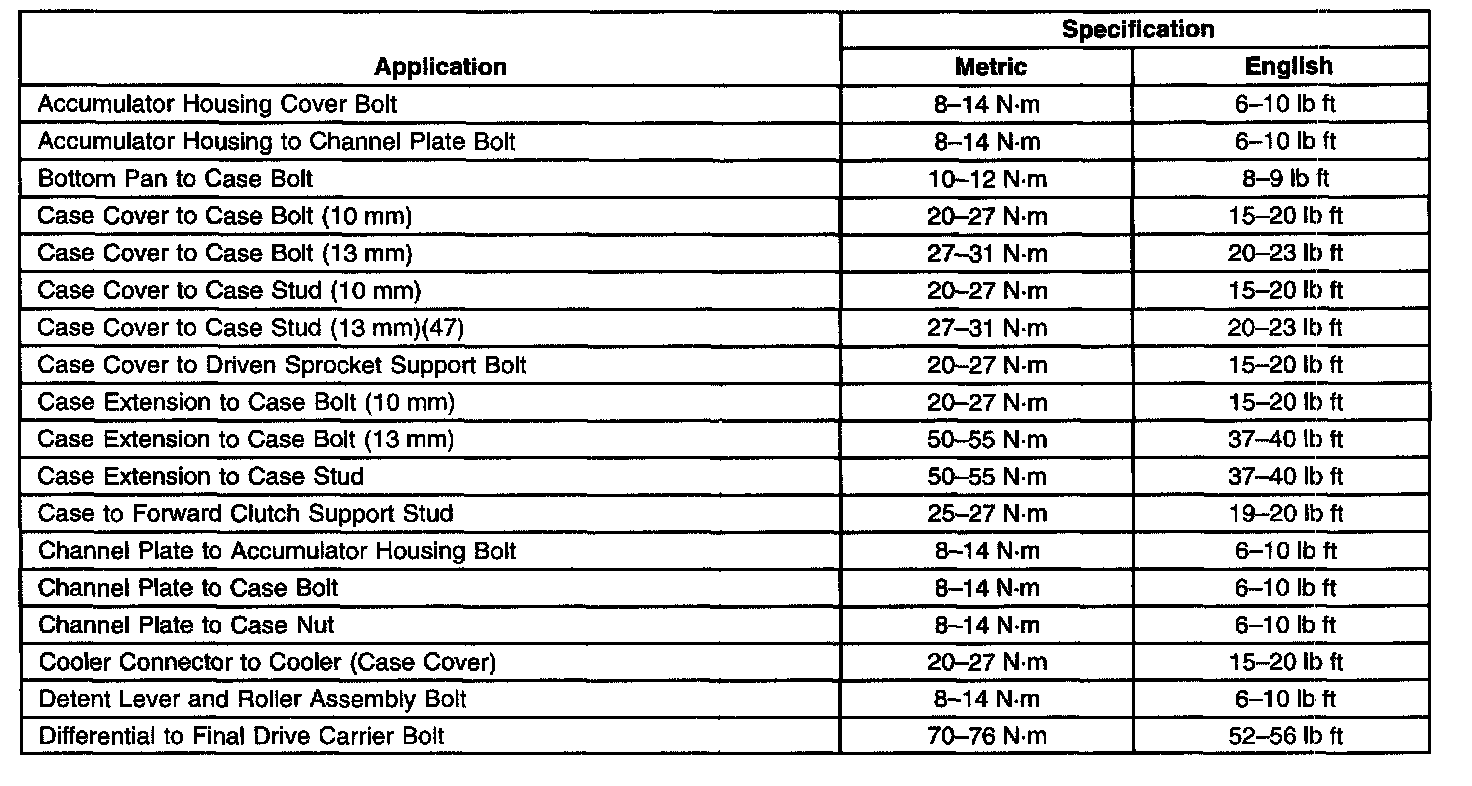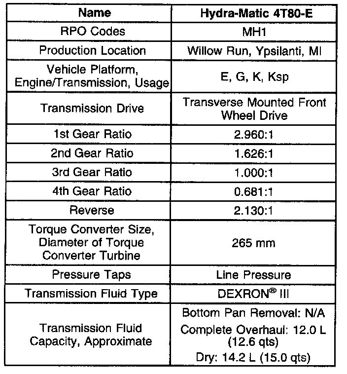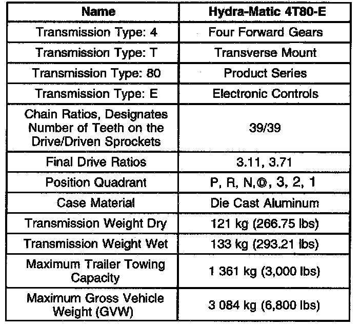 Transmission General Specifications