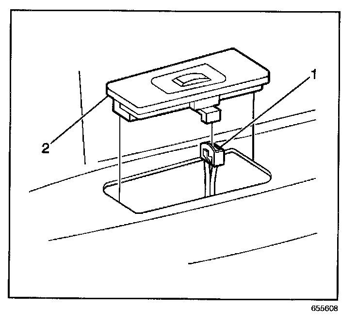 7. Partially pull the switch plate (2) from the trim panel.