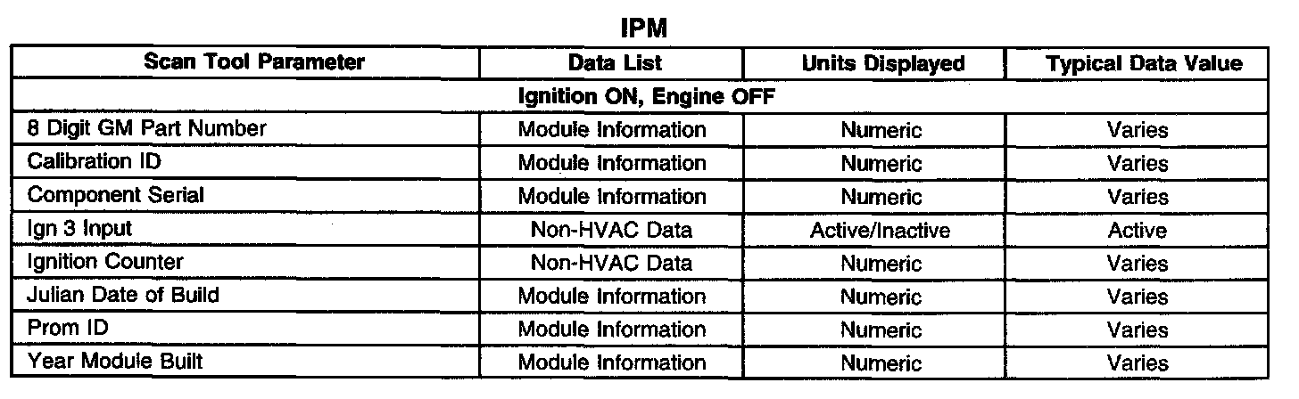 Scan Tool Data List - Instrument Panel Module (IPM)