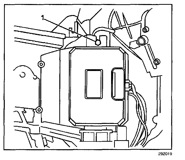 8. Remove the blower control module retaining fastener (1).