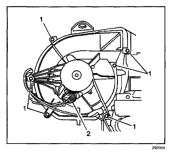 6. Disconnect the blower motor electrical connector (2).