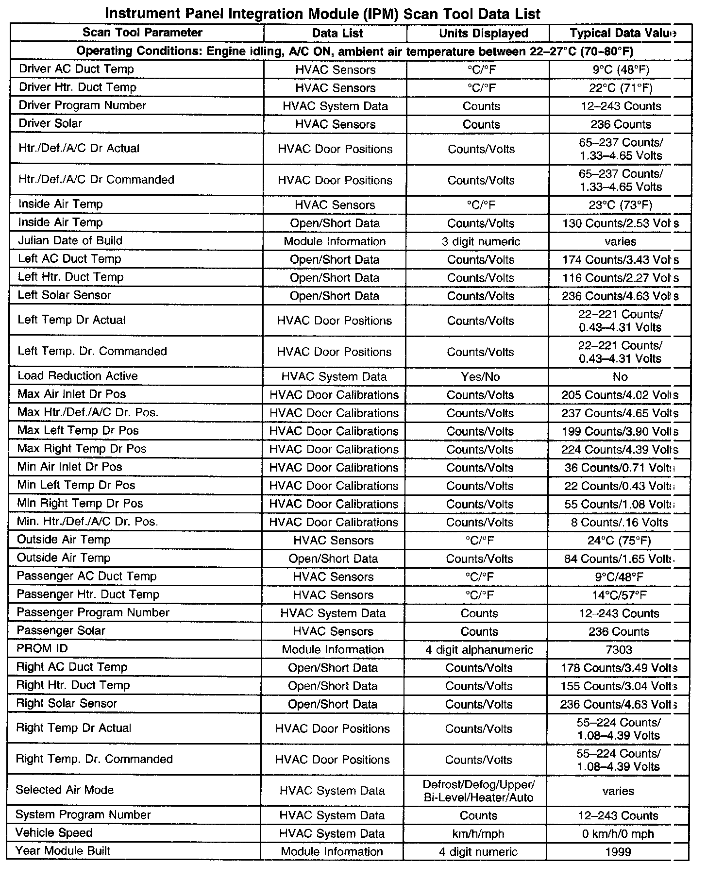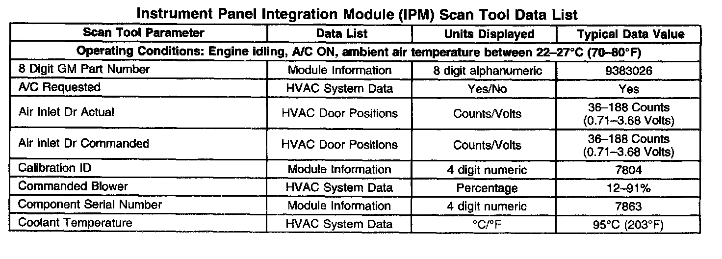 Instrument Panel Integration Module (IPM) Scan Tool Data List: