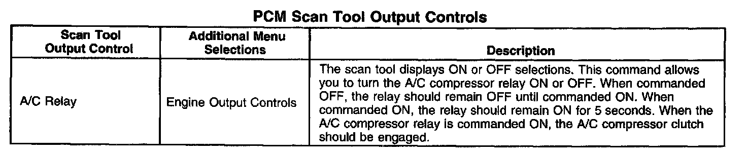 PCM Scan Tool Output Controls: