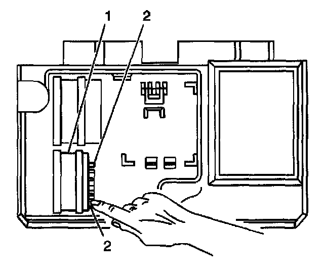 6. Remove the RIM (1) by depressing the locking tabs (2) inward, in order to release the RIM (1) from the electrical component mounting panel.