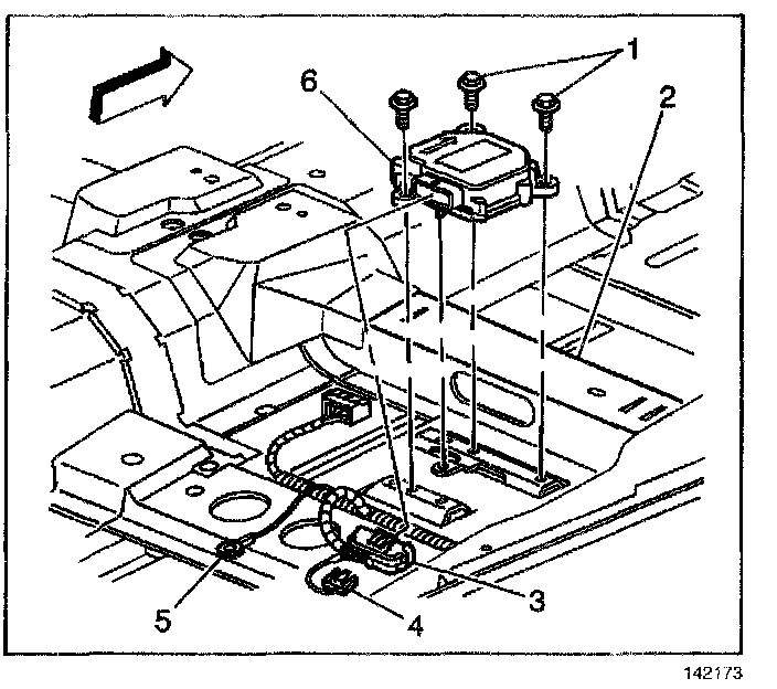 4. Lift up the carpet and insulation in order to access the inflatable restraint sensing and the diagnostic module (SDM).