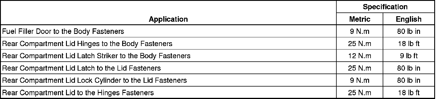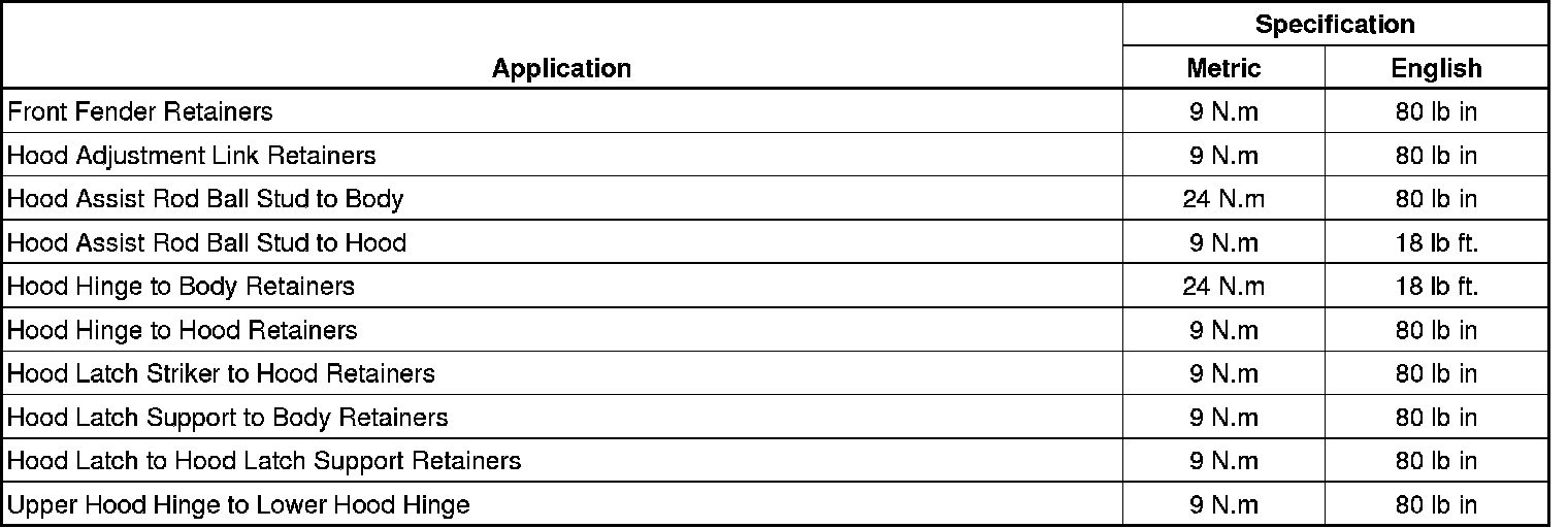 Fastener Tightening Specifications