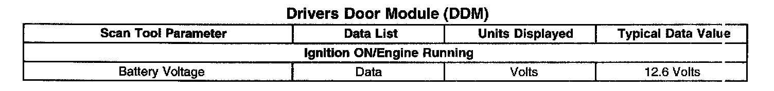 Scan Tool Data List - Drivers Door Module (DDM)
