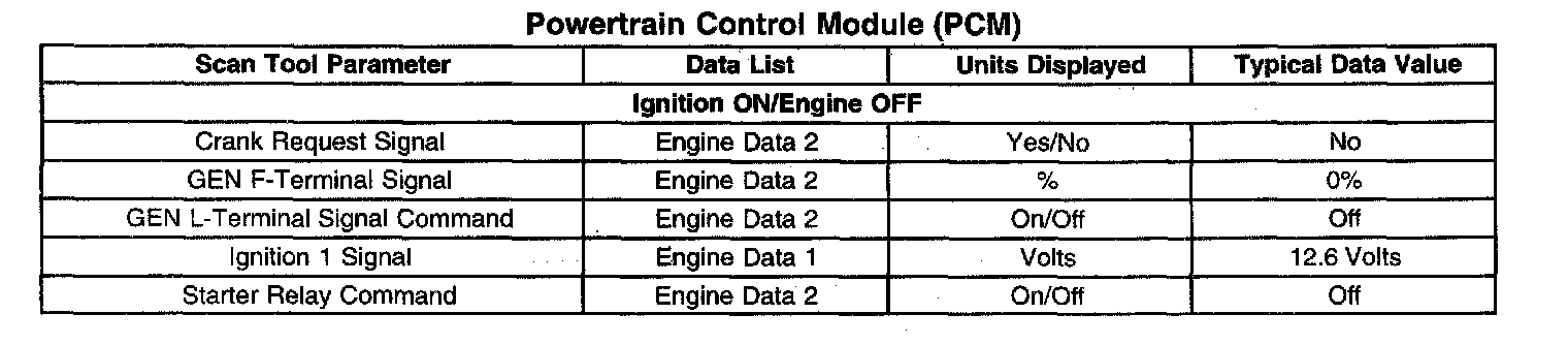 Scan Tool Data List - Powertrain Control Module (PCM)