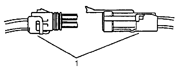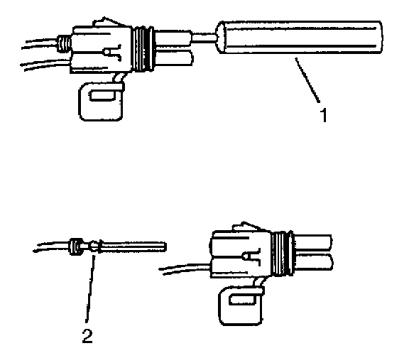 4. Insert the Weather Pack(R) terminal removal tool into the front (mating end) of the connector cavity until it rests on the cavity shoulder (1).