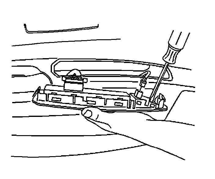 1. Insert a flat - bladed tool under the front edge of the switch to release the retainer from the door trim panel.