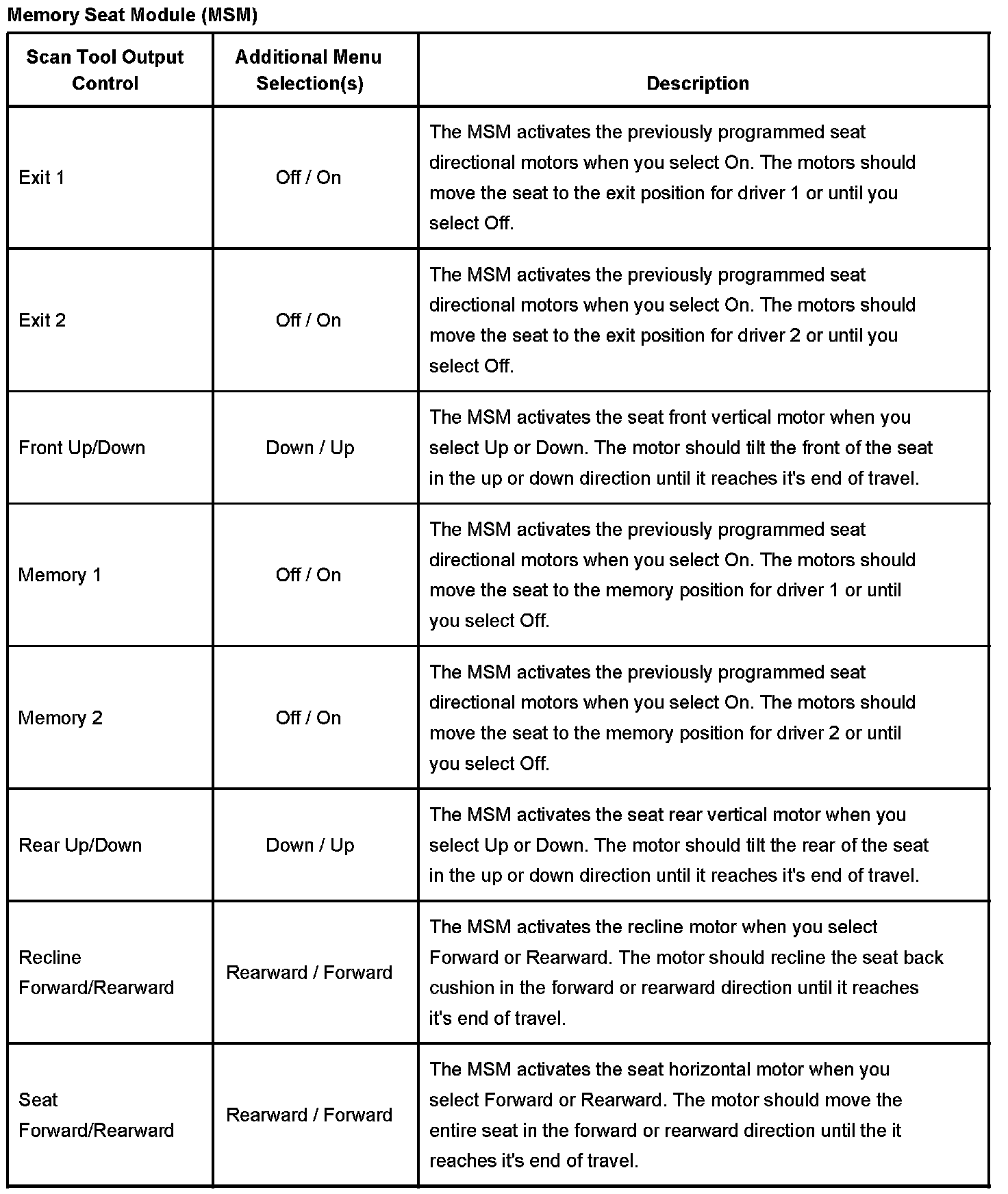 Memory Seat Module (MSM):